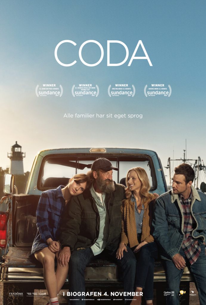 🆕 PREMIERE: CODA er en engelsk forkortelse og betyder Barn af døve voksne. Rudy er den eneste hørende person, i hendes ellers døve familie. Da families fiskerivirksomhed trues, og dermed familiens levebrød, finder Ruby sig selv svær situation. Hun er splittet mellem, at skulle forfølge sin drøm om college og kærlighed til musikken, eller om hun skal blive i sin hjemby og hjælpe familien. ‘Coda’ er baseret på den franske film ‘Familien Bélier’. Se filmen i bl.a. @grandteatret.