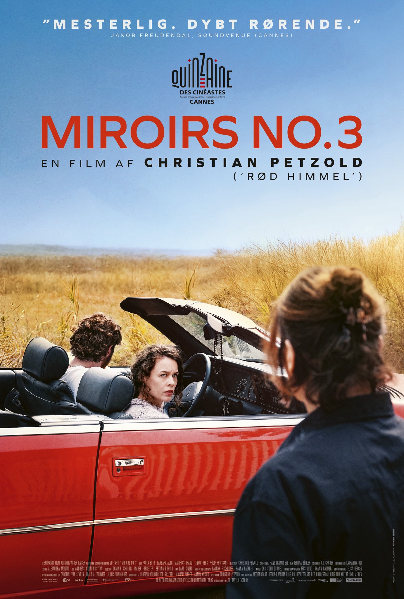 Christian Petzolds opfølger til ’Rød himmel’ byder på endnu en betagende hovedrolleindsats fra Paula Beer. Hun spiller den unge klaverstuderende Laura, der sammen med sin kæreste kommer ud for en alvorlig bilulykke. Mens kæresten omkommer, overlever Laura på mirakuløs vis uden ydre mén, men hun er inderligt rystet, da hun søger ly hos en lokal kvinde, Betty, der omfavner Laura med moderlig hengivenhed. Bettys mand og voksne søn opgiver snart deres indledende modstand mod Lauras tilstedeværelse, og sammen opbygger de langsomt en familielignende hverdag. Lige indtil fortiden trænger sig på. ’Miroirs No. 3’ havde premiere på filmfestivalen i Cannes i 2025.
